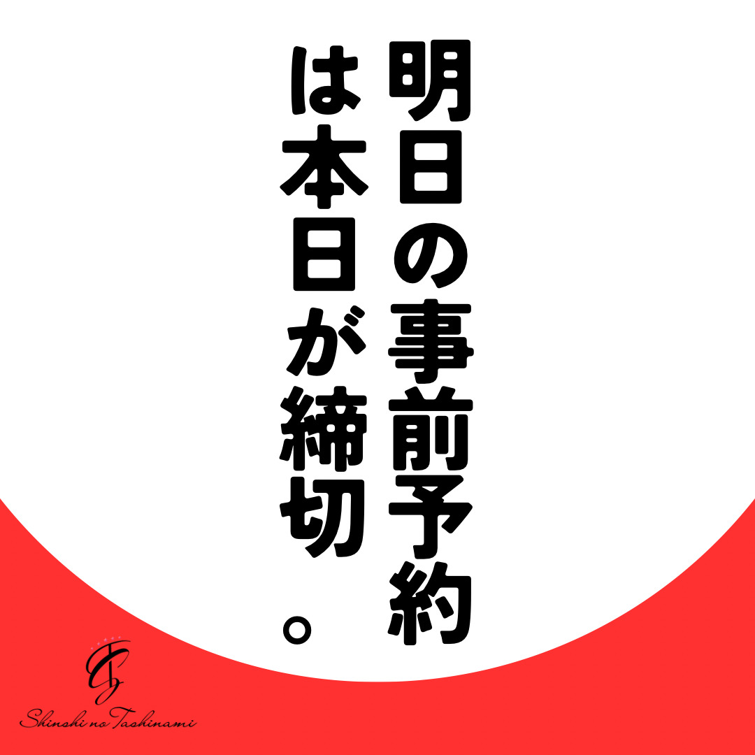 明日の事前予約は本日が最終日でございます!