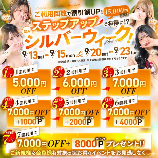 ・7回利用7,000円引き+8,000P